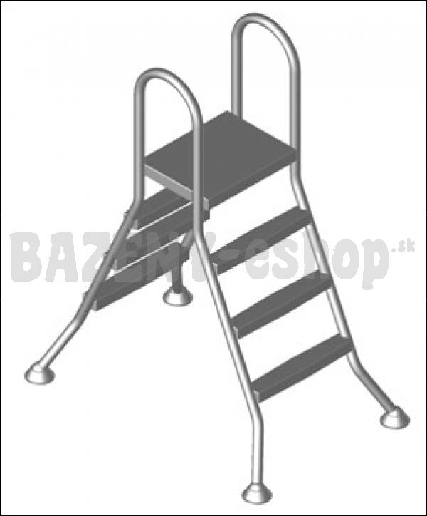 Oceľový 5/1 stupňový rebrík určený pre nadzemné, voľne stojace bazény s vertikálnymi stenami.
